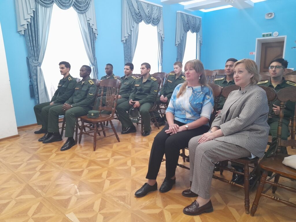 Сотрудники Смоленской областной универсальной научной библиотеки имени А.Т. Твардовского провели литературно-музыкальную композицию «Мой край не обошла война» для иностранных курсантов военной академии имени Маршала Советского Союза А. М. Василевского.