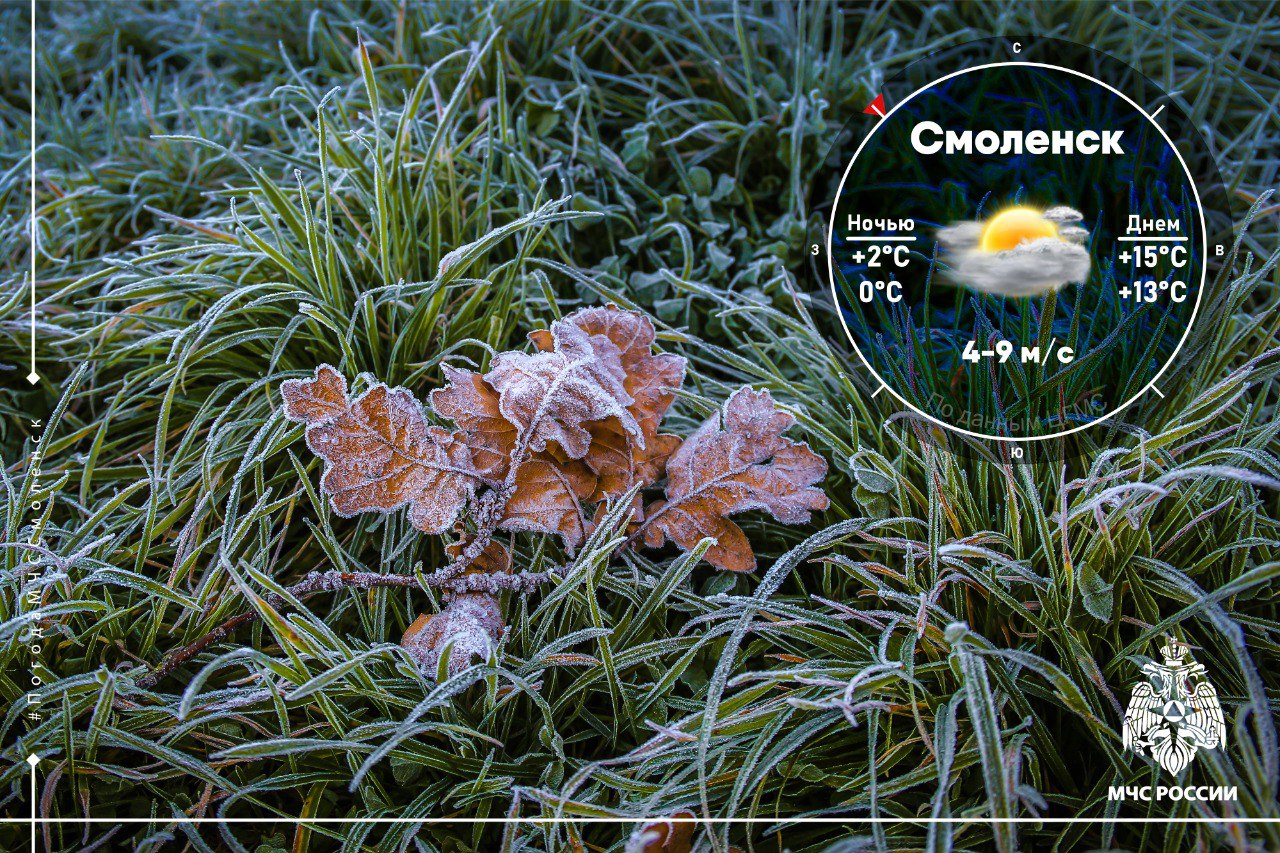Ночью по области подморозит до –2°C. Днём воздух прогреется до +10°C…+15°C. В самом Смоленске ночные температуры составят около 0°C…+2 °C, а днём ожидается в пределах +13°C…+15 °C.