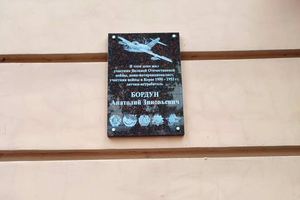 На фасаде дома № 3 по улице Тухачевского в Смоленске установили мемориальную доску в память участника Великой Отечественной войны, воина-интернационалиста, летчика-истребителя Анатолия Зиновьевича Бордуна.