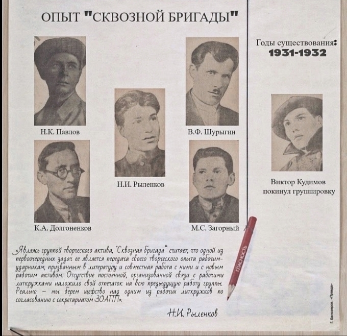 В начале 1930-х годов Западная областная ассоциация пролетарских писателей (ЗОАПП) обдумывала, каким образом привлечь рабочих-ударников и колхозников для развертывания творческой работы. С этой целью в январе 1931 года была организована литературная группа «Сквозная бригада».