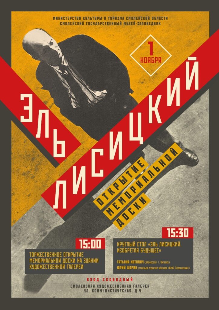 Его знаменитый плакат «Клином красным бей белых» был напечатан в 1920 году в городской типографии в Смоленске. Эль Лисицкий опередил своё время и оказал колоссальное влияние на искусство ХХ века.