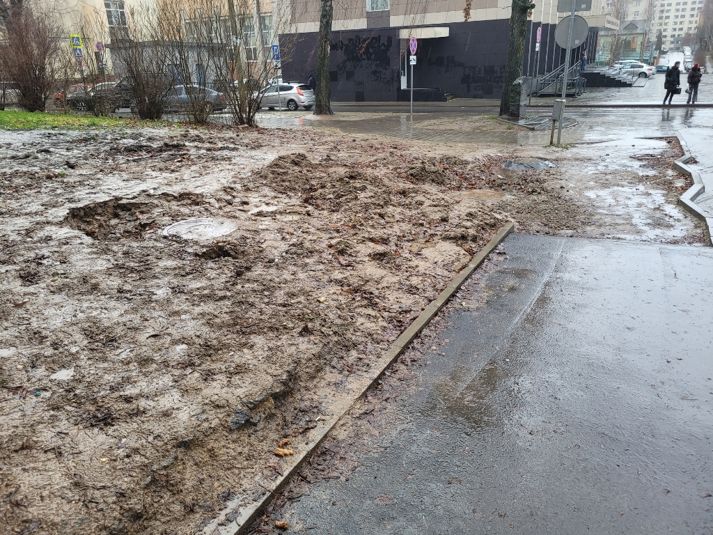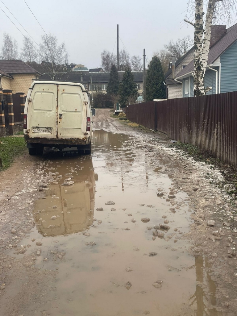 Ну и вишенка на торте – грязный водоем на 7‑м Краснофлотском переулке, который можно преодолеть только на машине. На этом месте, по обещанию упомянутых должностных лиц, должен лежать асфальт или хотя бы щебень. Но как видите, плещется мутная жижа.