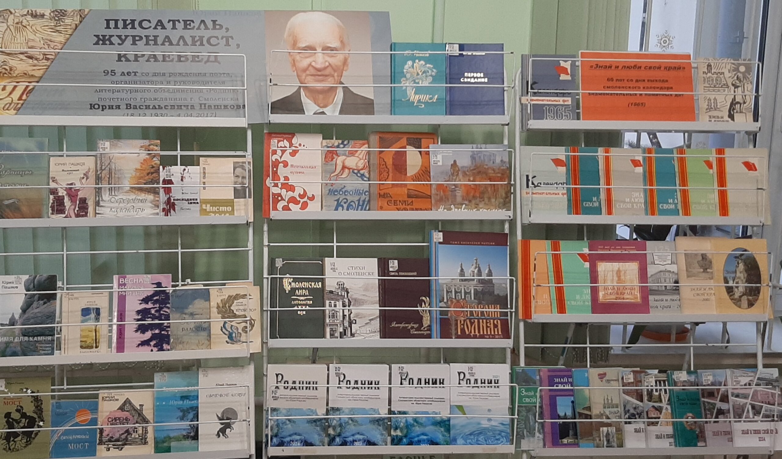 18 декабря исполнилось 95 лет со дня рождения поэта, основателя и руководителя литературного объединения «Родник», Почетного гражданина Смоленска Юрия Васильевича Пашкова (18.12.1930 – 4.04.2017). К юбилею в Центре краеведческой литературы областной библиотеки им. А.Т. Твардовского открылась книжная выставка «Писатель, журналист, краевед».