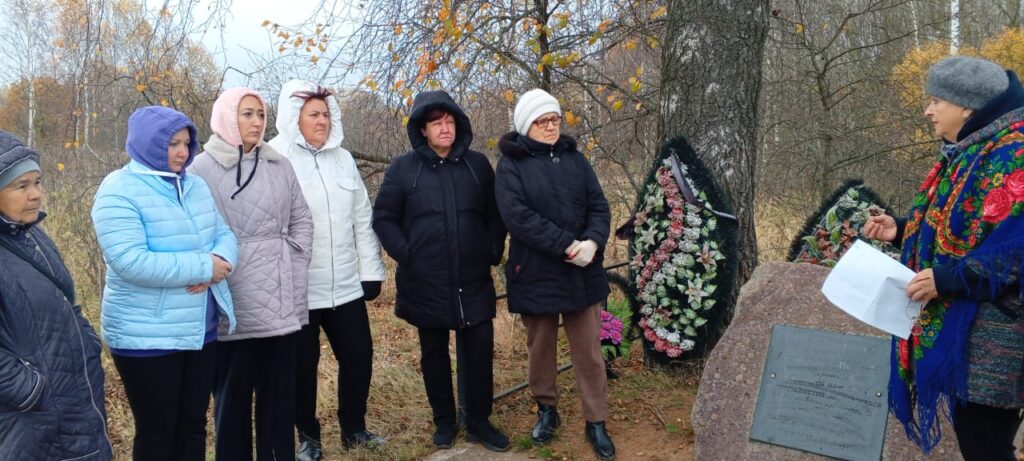 Далее наш путь лежал в деревню Киселевку. Здесь мы познакомились с историей этого населенного пункта и посетили деревенское кладбище, где покоятся члены Союза писателей России – В. П. Смирнов и А. Д. Бугаев, а также местный житель – участник СВО С. В. Гервяло. Руководитель районного отделения ВСД «Русский Лад» Т. Д. Ковалева поделилась с нами интересными фактами об их жизни и творчестве, а также прочитала проникновенные стихи знаменитых поэтов. Убрав листву на могилах талантливых земляков и почтив их память минутой молчания, мы сфотографировались и продолжили свою эколого-краеведческую экспедицию по родному краю.