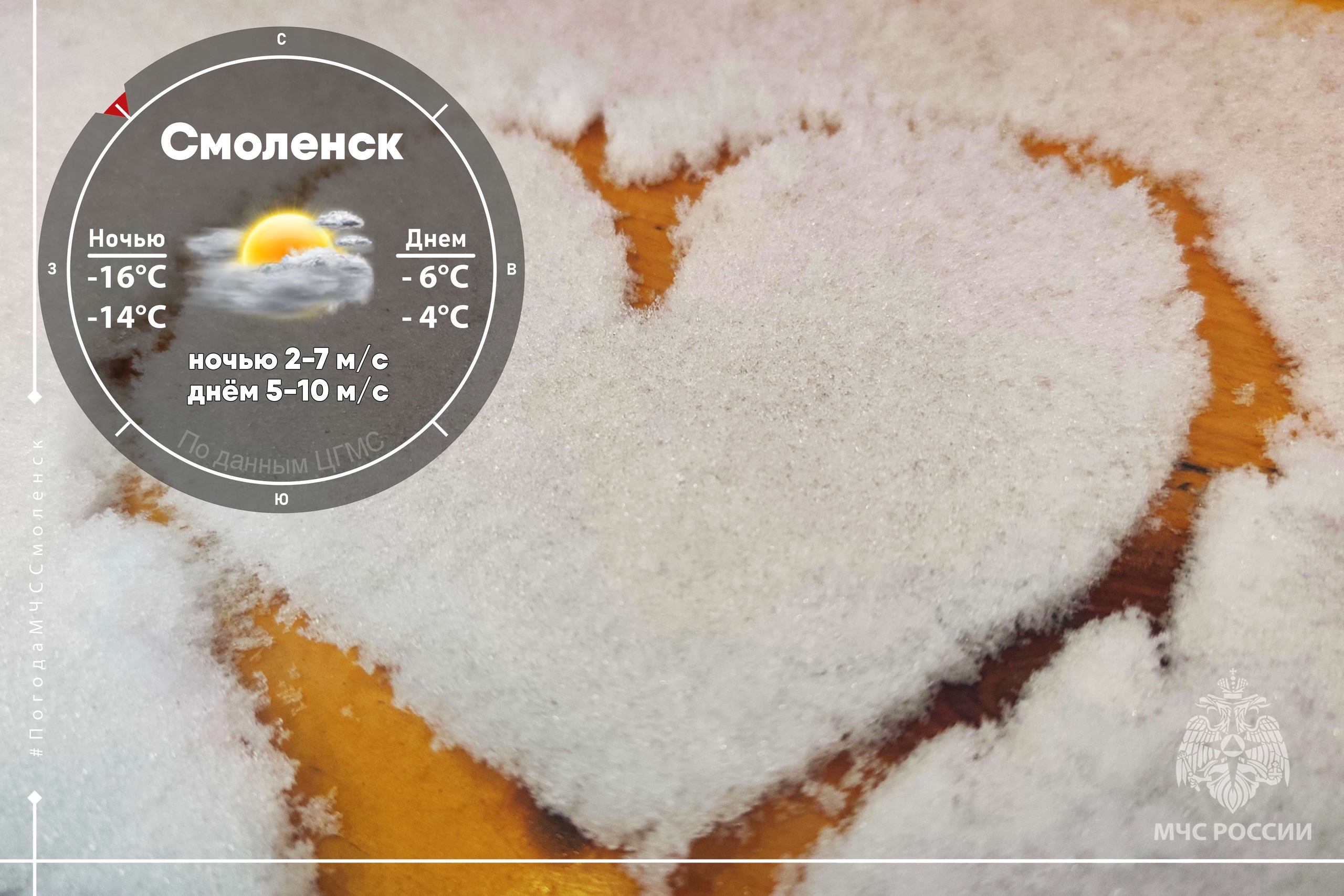 В Смоленске: ночью -16°С …-14°С, днём -6°С …-4°С.