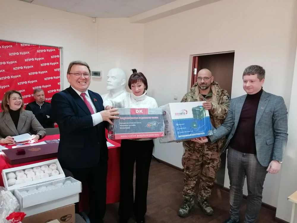 Депутат Государственной Думы, представляющий Брянскую, Курскую, Орловскую и Смоленскую области, председатель Центральной Контрольно-ревизионной комиссии КПРФ Николай Иванов в помещении Курского обкома партии, первым секретарем которого он является, вручил военнослужащим автономные обогреватели, которые безопасны в применении, пригодны особенно для блиндажей, а также теплые вещи и сладкие подарки.