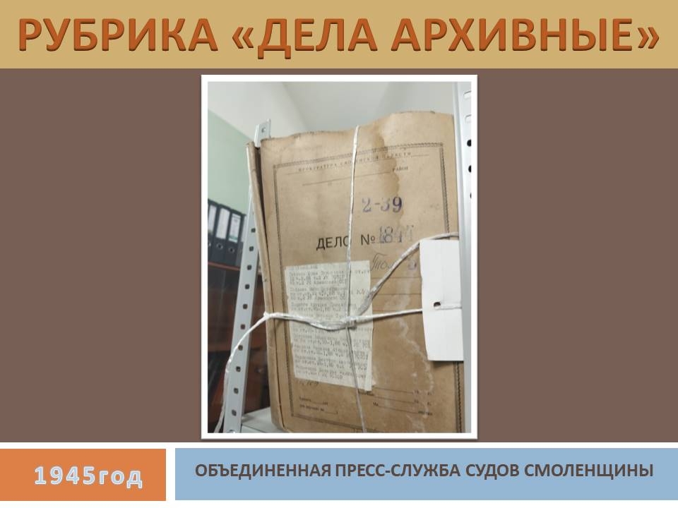 17 марта 1945 года Сычевским районным народным судом Смоленской области рассмотрено уголовное дело в отношении Нестерова и Фадеева, обвиняемых в совершении преступления, предусмотренного ч. 2 ст. 79 УК РСФСР (умышленное истребление или повреждение имущества, принадлежащего государственным учреждениям или предприятиям, если установлено, что в результате их последовала приостановка или перерыв производства, или причинен другой тяжелый ущерб государству).