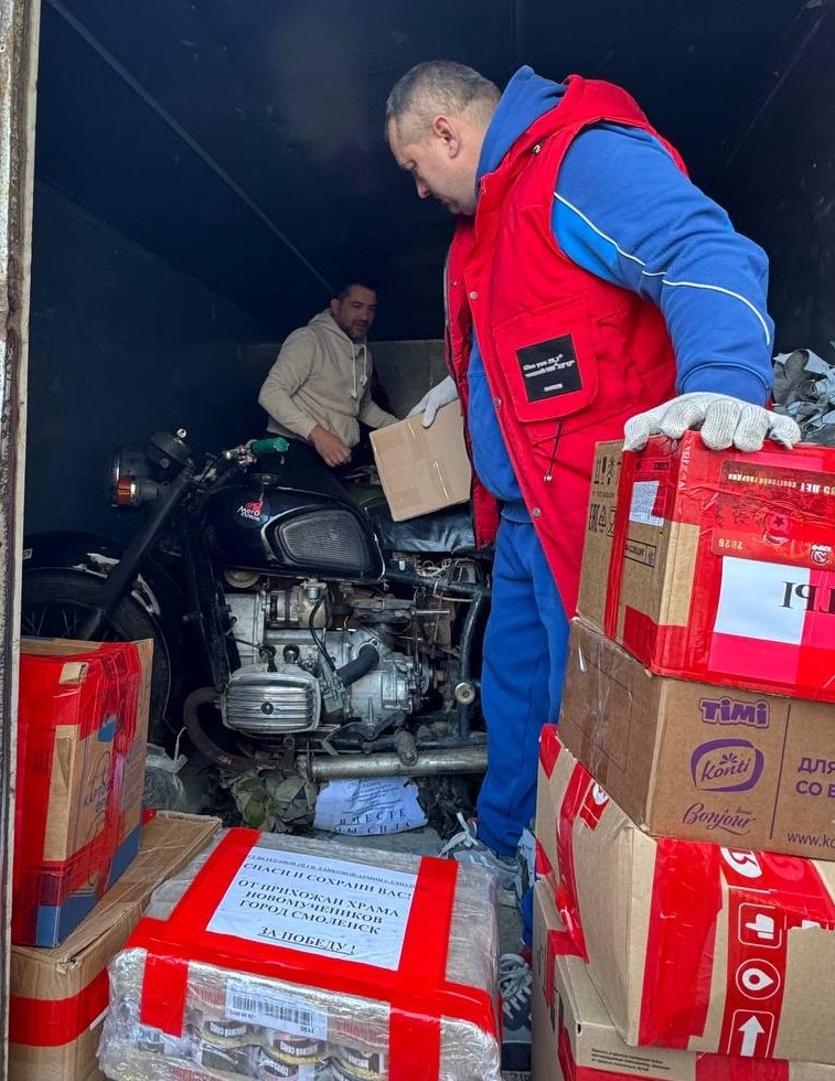 В составе груза 2 мотоцикла, 200 антидроновых одеял, масксети, маскировочные халаты, 10 коробок окопных свечей, печь (буржуйка), 500 пар носков, средства личной гигиены, продукты питания, а также письма с рисунками и открытки детей с пожеланиями защитникам Родины скорейшей Победы и возвращения домой.