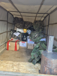 Очередная партия гуманитарного груза, в которую вошли 150 антидроновых одеял, масксети, окопные свечи, 200 пар носков, печи-буржуйки, медикаменты, продукты питания, предоставленные активистами партии и сторонниками КПРФ из областного центра и муниципальных округов региона, ветеранскими организациями, трудовыми коллективами, отправлена Смоленским обкомом КПРФ в зону СВО бойцам, защищающим интересы Родины на харьковском направлении.